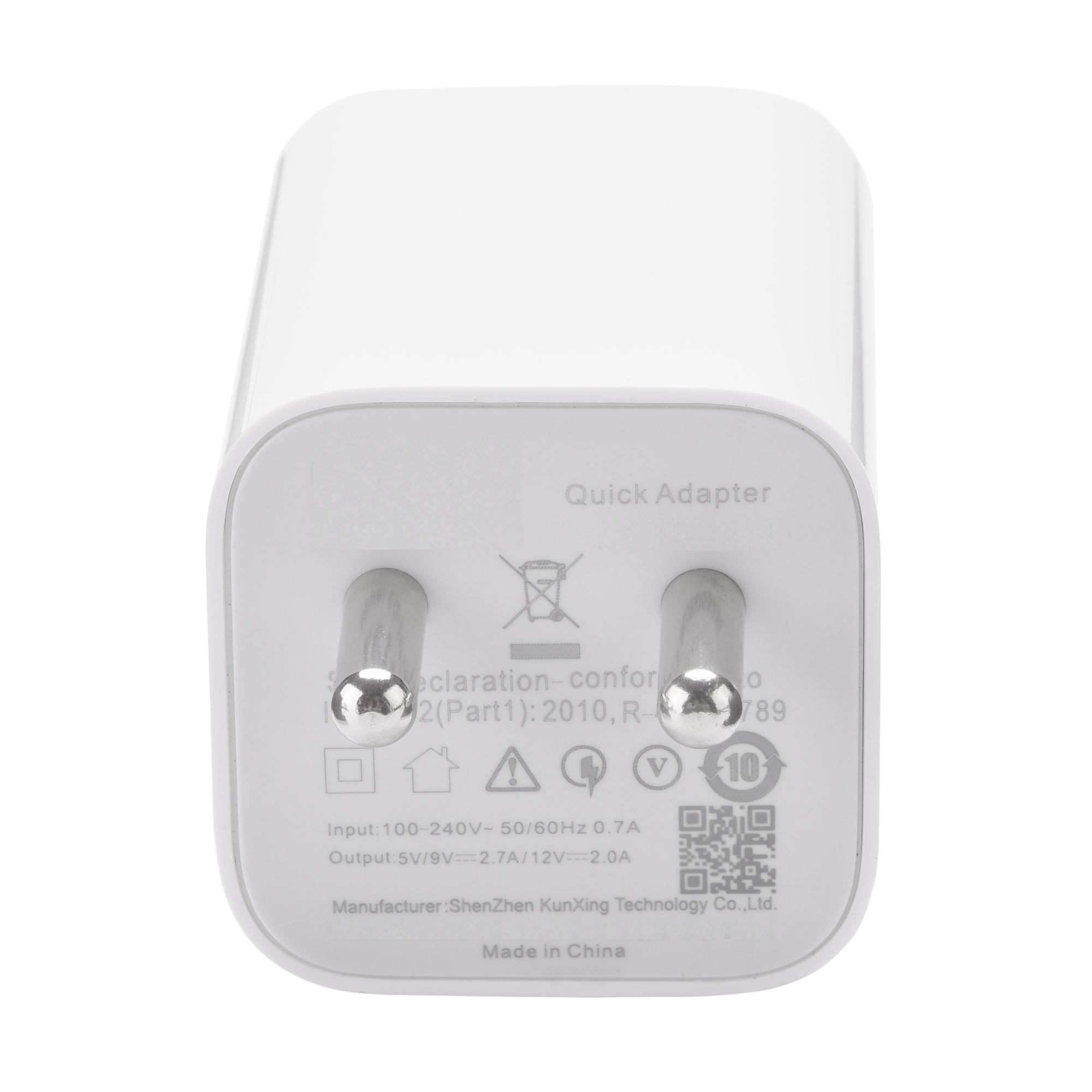 参数 单口快充3.0墙充 输入: 100V-240V 50/60Hz 0.6A 输出: 3.6V-8V/3A 9V/2.7A 12V/2A 产品尺寸: 47*32*32mm 重量:67g 圆滑紧凑的设计